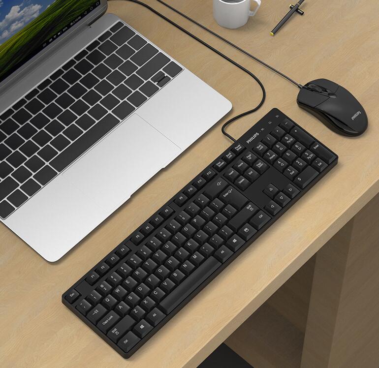 飛利浦鍵盤(pán)鼠標(biāo)套裝USB有線電腦臺(tái)式筆記本辦公專用打字游戲機(jī)